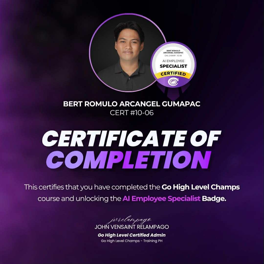 Professional certification in designing and deploying AI-powered automation within GoHighLevel, enabling intelligent workflows that enhance client engagement, streamline operations, and drive business growth.